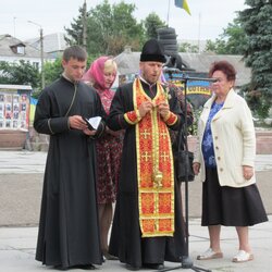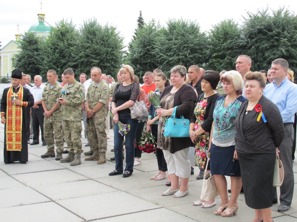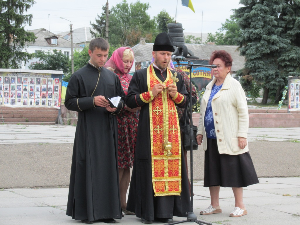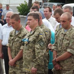 На поминальній молитві були бійці АТО, побратими Сергія, мама Сергія Алла Анатоліївна, рідні та близькі сім’ї, директор першої школи Галина Казимирівна, поетеса Веремій Анжела Анатоліївна, однокласники Сергія, волонтери і небайдужі жителі м. Хмільник.