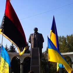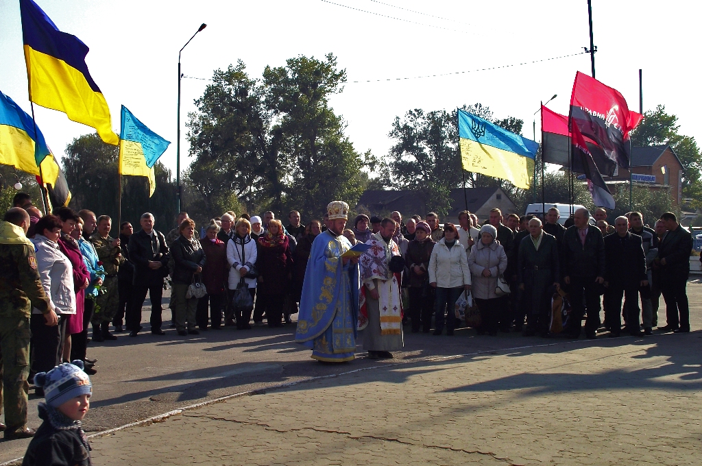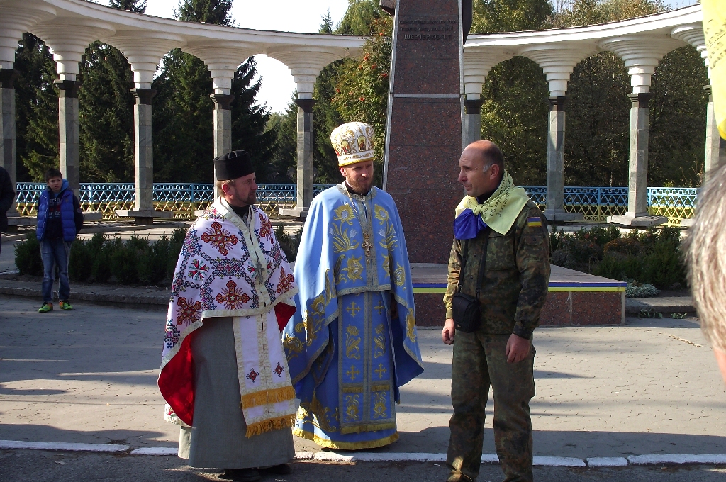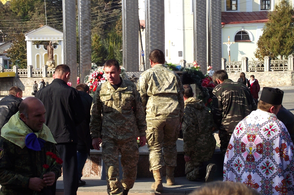 Далі вирушила урочиста хода до пам’ятника «Небесній Сотні» та полеглим воїнам АТО. Була звершена заупокійна літія та виголошене слово отцем Іваном Пукасом, волонтерами, військовими та місцевими активістами.