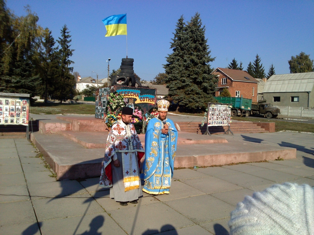 З нагоди свята Покрови Пресвятої Богородиці відбулось богослужіння у церкві Святих апостолів Петра і Павла УПЦ КП у м. Хмільник. Опісля, біля пам’ятника Т.Г. Шевченка було звершено молитву за Україну та проспівано гімн "Боже великий єдиний" настоятелем храму Петра і Павла протоієреєм Іваном Пукасом у співслужінні з отцем Іваном Корзуком та за участю воїнів АТО, волонтерів та небайдужих хмільничан.