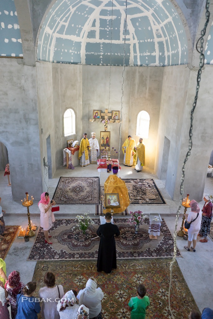 В цей день зранку поспішали молільники до Божого храму, адже в ньому вперше звершився чин малого освячення води, а після звершилася Божественна Літургія Святого Іоана Златоустого на честь свята Святих апостолів Петра і Павла. Літургію очолив настоятель храму благочинний протоієрей Іван Пукас у співслужінні духовенства Хмельницької єпархії, Волинської єпархії та Вінницької єпархії Хмільницького благочиння: протоієрей Валерій з м. Луцьк, благочинний Дережнянського благочиння протоієрей Петро, благочинний Летичівського благочиння протоієрей Андрій, настоятель храму у Меджибожі протоієрей Петро, настоятель Старосинявського благочиння протоієрей Михайло, благочинний сіл Вишенька та Великий Остріжок протоієрей Ігор, благочинний сіл Терешпіль та Куманівці протоієрей Олег, благочинний сіл Зозулинці і Лозна протоієрей Олександр, ієрей Вадим з с. Уланів.
