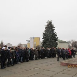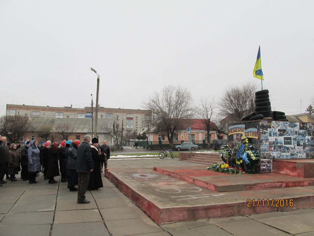 Учасники заходу вшанували світлу пам'ять про Героїв хвилиною мовчання. По завершенні зібрання усі поклали квіти до пам’ятного місця Героям Небесної Сотні, а також взяли участь у поминальній панахиді, яку звершив настоятель храму Святих Первоверховних апостолів Петра і Павла УПЦ Київського патріархату протоієрей Іван Пукас.