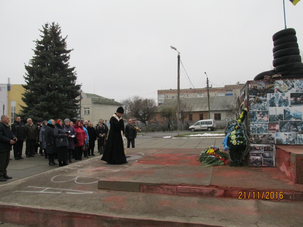 До учасників зібрання, від імені та за дорученням міського голови Сергія Редчика, звернувся керуючий справами виконкому міської ради Ігор Павлюк. «Сльозою вкрита наша пам'ять нині, бо заради Вкраїни, за Гідність і Свободу, мужні українці у кіптяві вогненного і посталого Києва не зрадили ідеалам добра і справедливості. Їх пам’ятатимемо! Їхні ідеали утверджуватимемо!», - нестримував хвилювання керуючий справами виконкому міської ради.