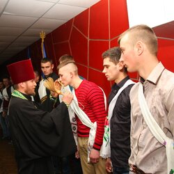 31 березня 2017 року в малому залі Хмільницького Будинку культури відбулися урочисті проводи призовників 2017 року до лав української армії. Протоієрей Іван Пукас звершив благословенну молитву за воїна, що йде на військову службу, вручив натільні хрестики, окропив призовників освяченою водою та виголосив слово настанови.