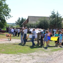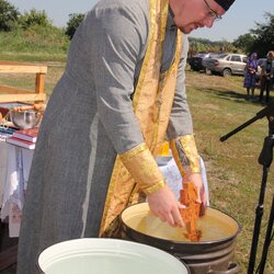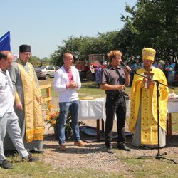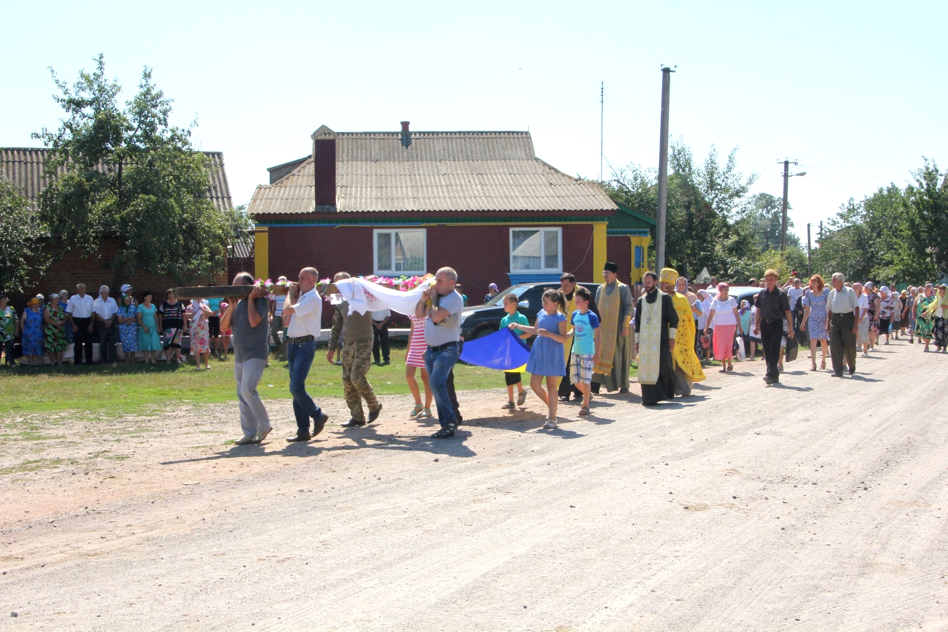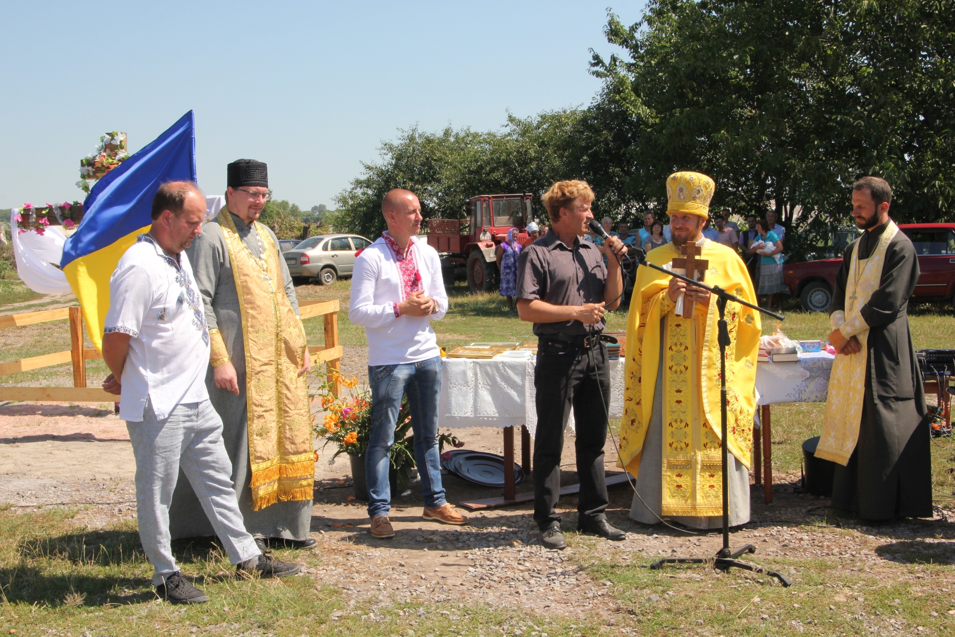 Хрест до місця освячення несли воїни АТО, а за ними двоє дівчат та хлопчиків несли розгорнутий Державний прапор України. Декількасот вірян прийняло участь у цій історичній події, а також був присутній особливий гість - лідер гурту "ТіК" Віктор Бронюк, активний волонтер, патріот та меценат будівництва майбутнього храму. Було виголошено слово про Святого пророка Іллю та привітання усіх учасників молитви і закликано Боже благословення на початок будівництва храму благочинним Хмільницького благочиння. Після цих урочистостей відбувся святковий обід, на якому було проспівано духовні та патріотичні пісні, зокрема "Боже великий, єдиний" та Гімн України. Це вже стало нашою традицією завершувати свята цими духовними піснеспівами. Також відбулася зустріч із директором місцевої школи і за пропозицією протоієрея Івана Пукаса директор надав згоду влаштовувати духовні зустрічі із педагогічним колективом та учнями.