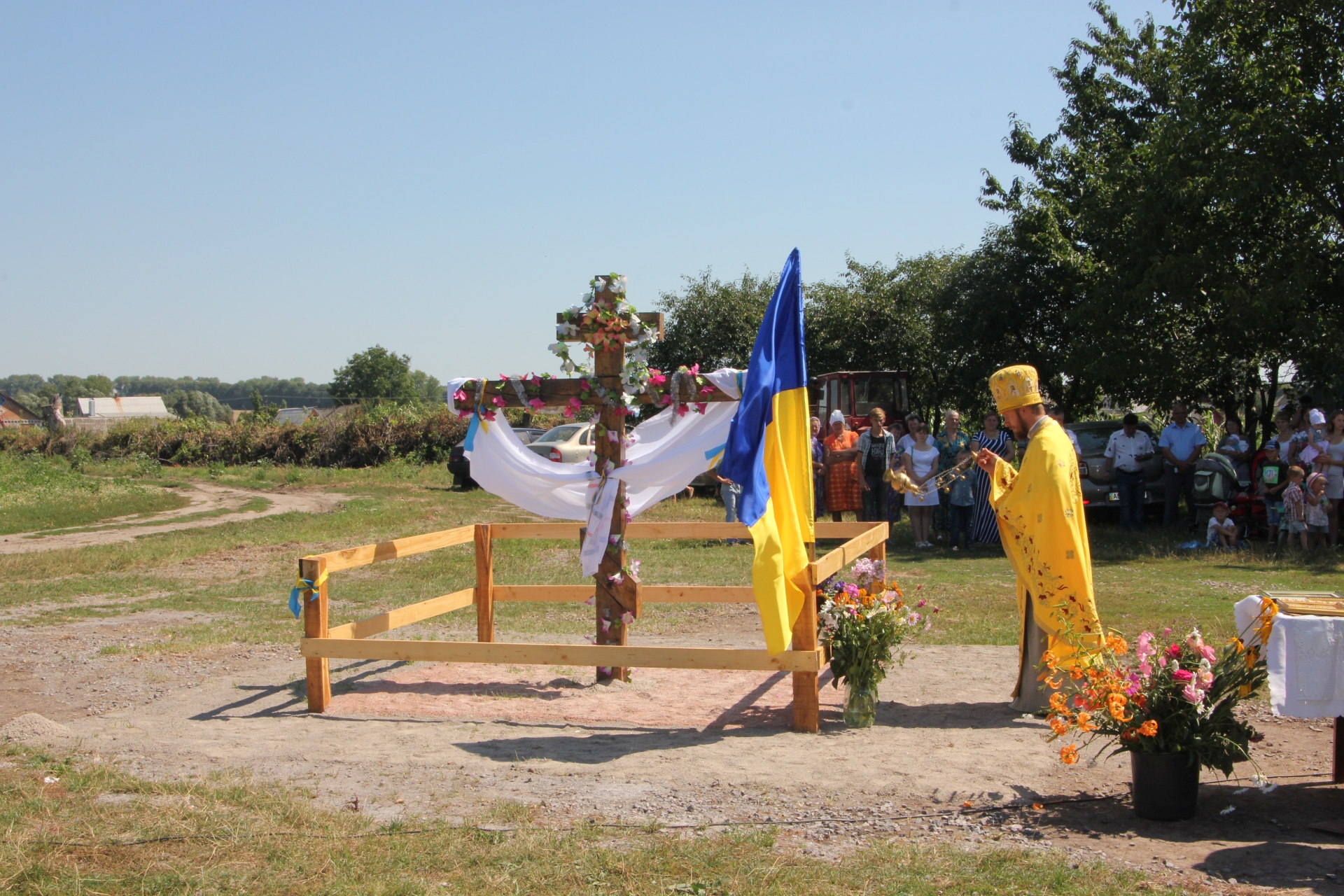 Встановлення хреста на місці майбутнього будівництва храму в селі Соколова