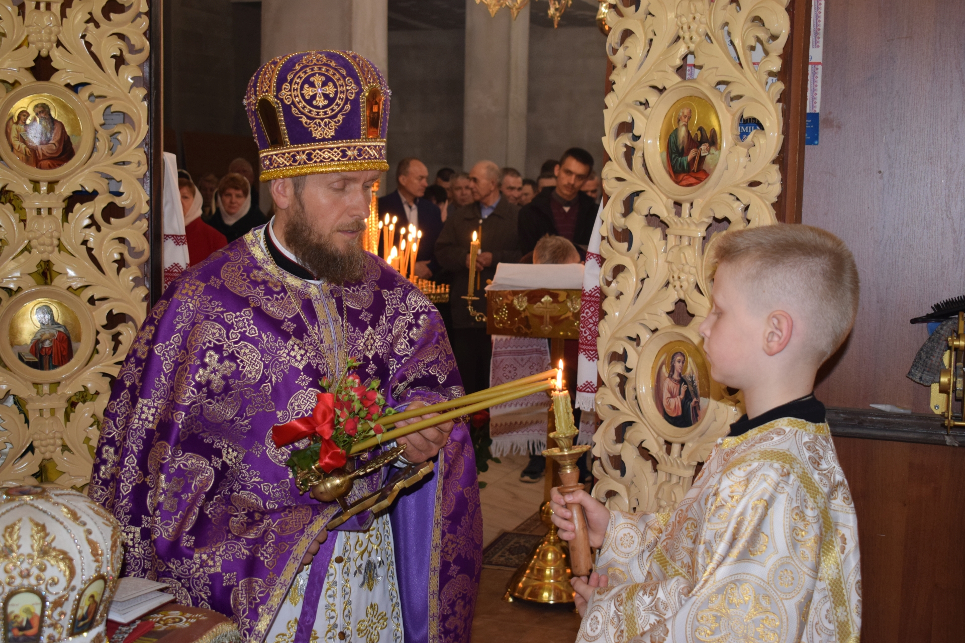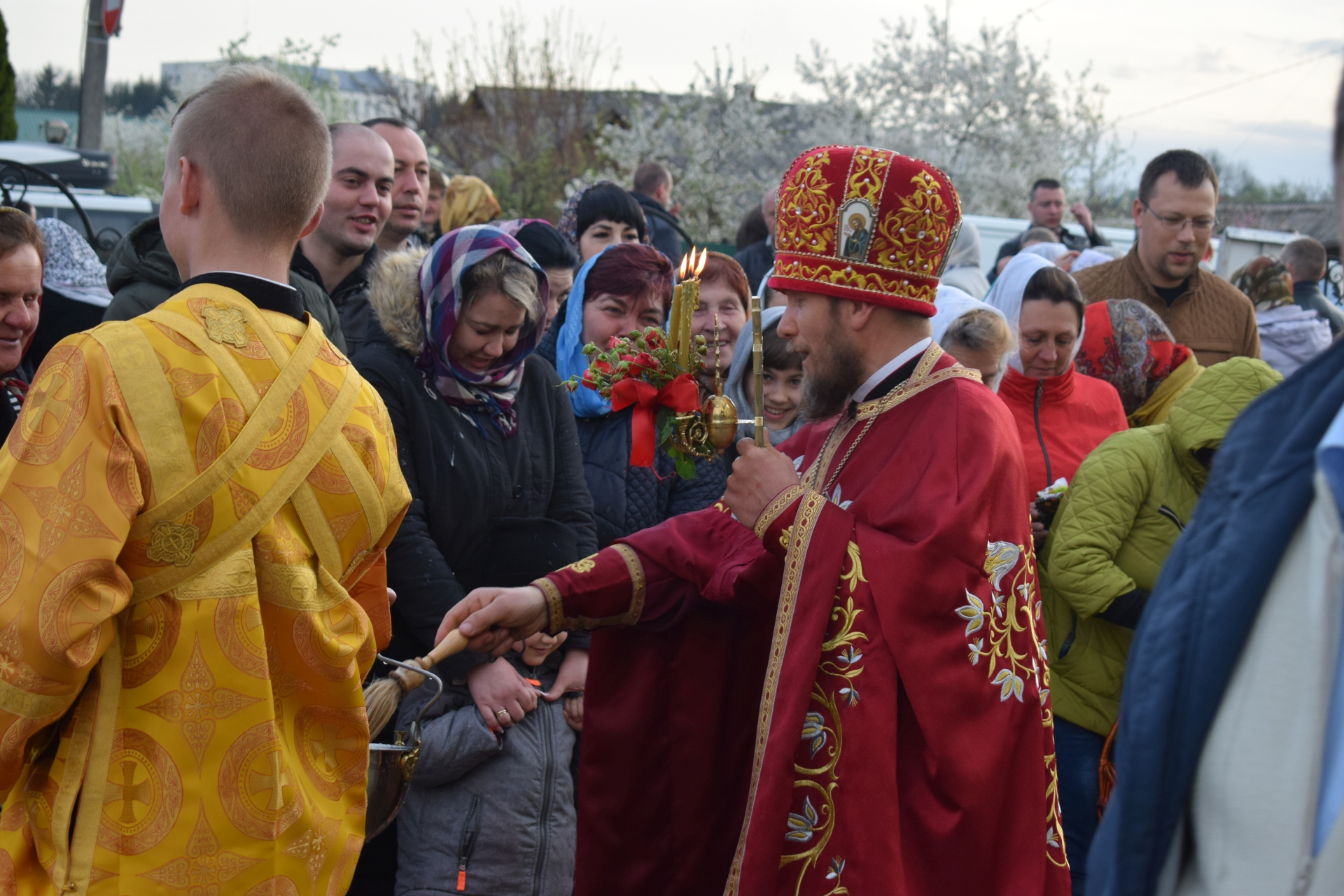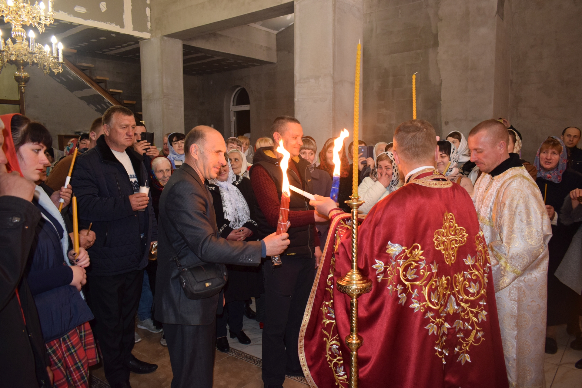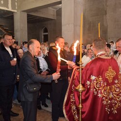 До храму було привезено Благодатний вогонь, що зійшов у Єрусалимі.